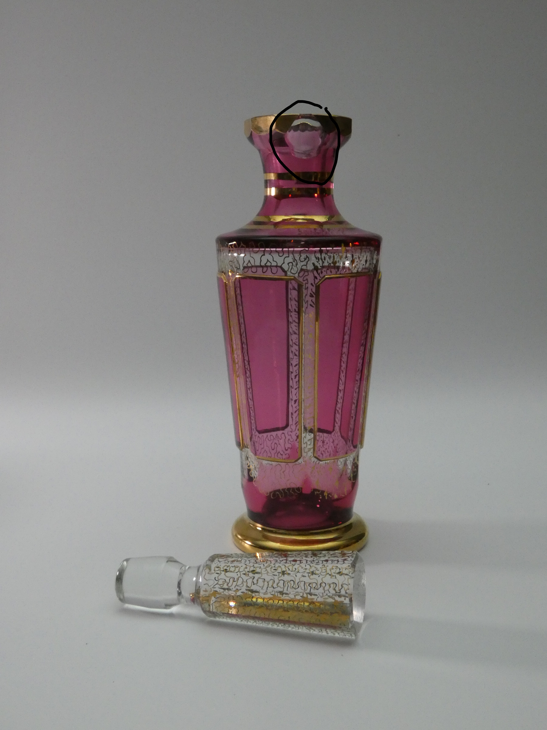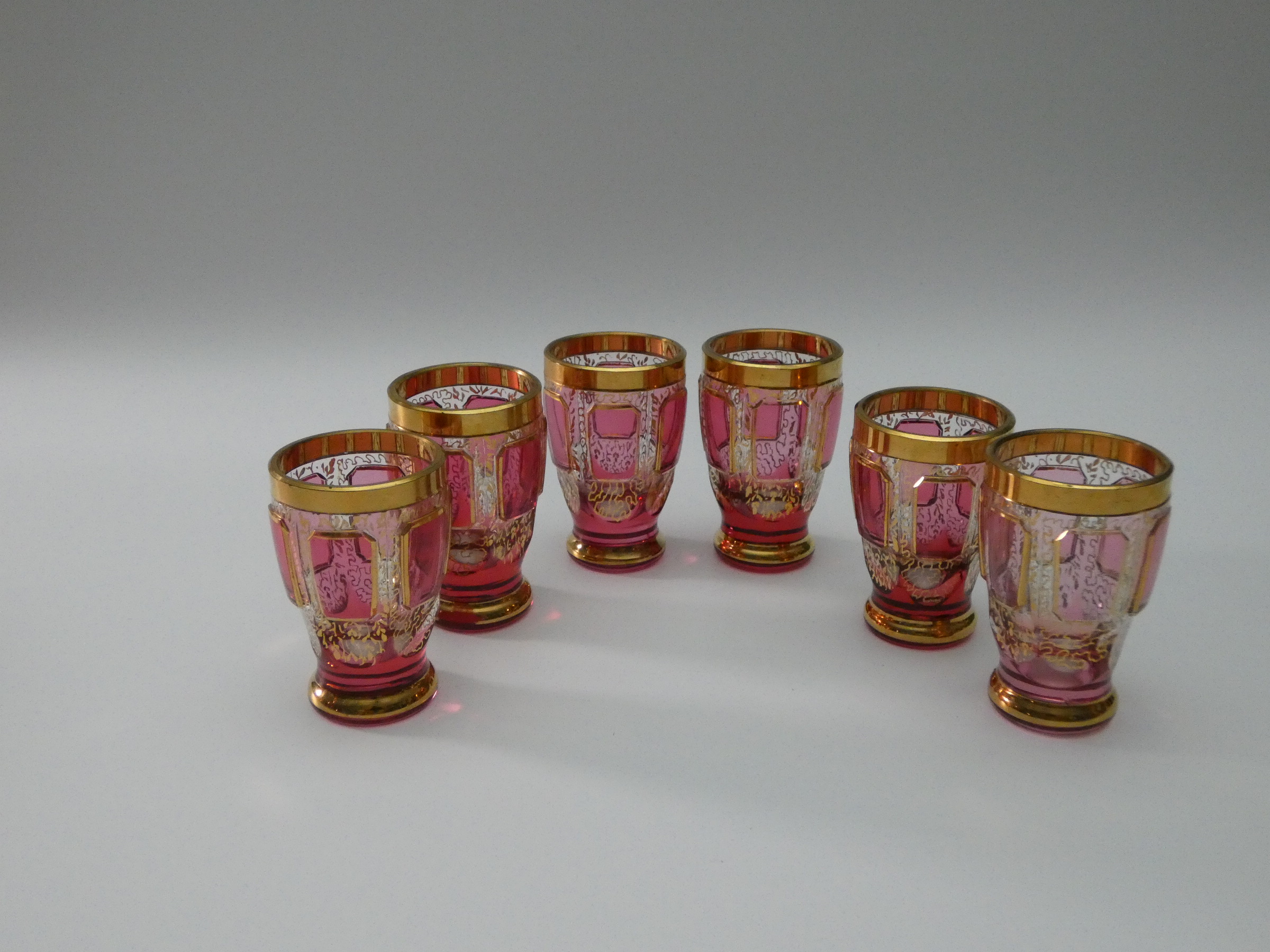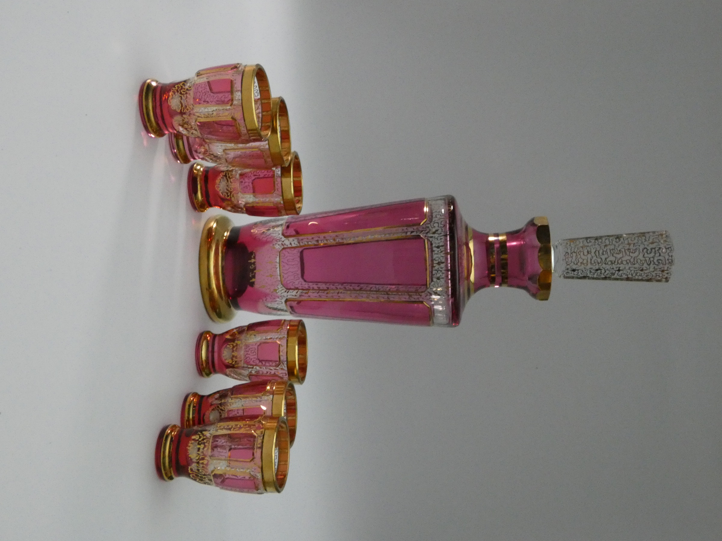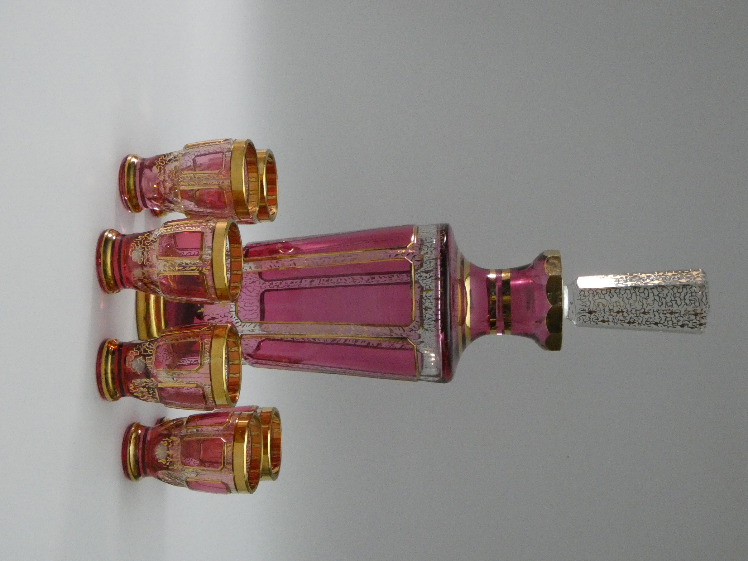 stará likérová souprava lištované sklo ,stav foto, pohárcí top stav, karafa má jeden oťuk